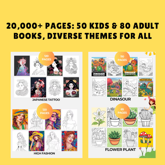 ( Digital Download ) 🎨 20,000+ Pages: Kids (50 Books) & Adults (80 Books) - Unleash Your Creativity! 📥